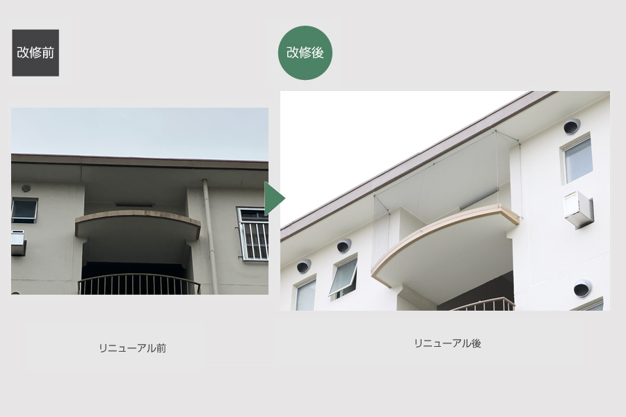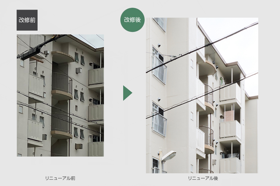 | 備考 | 屋根、バルコニー等防水工事・躯体補修及び高圧洗浄・外壁、天井等塗装工事・外壁タイルクリア塗装・鉄部塗装・バルコニー床長尺シート貼・各ガラリ交換ほか |